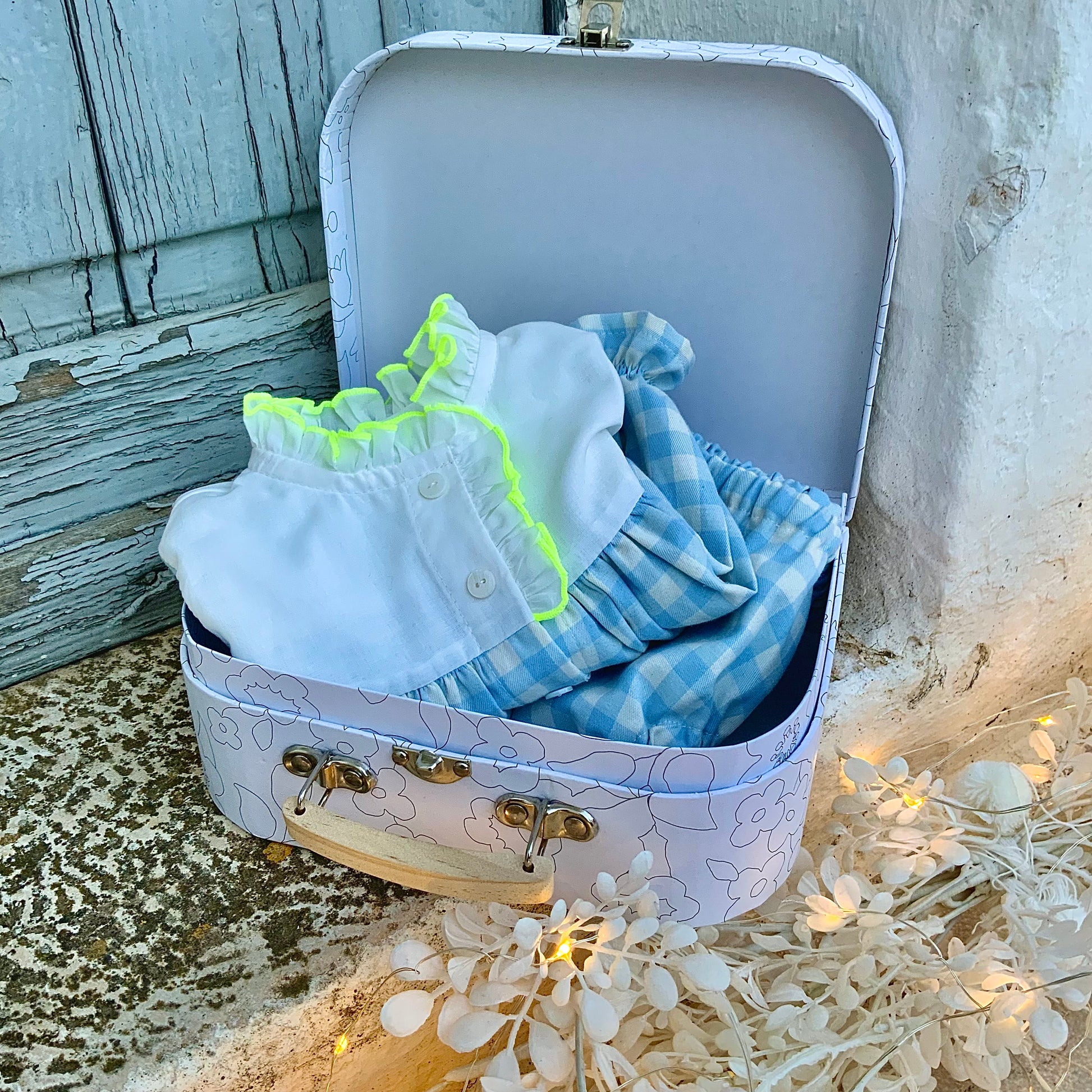 Camicia in flanella con fantasia Vichy. Carrè in batista colore panna. Disponibile anche la culotte d'abbinare.